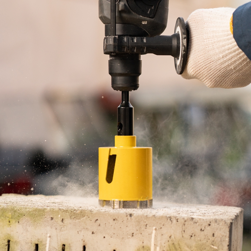Алмазная коронка KRANZ используется для сверления отверстий в конструкциях из бетона, армированного бетона, кирпичной кладки и силикатного кирпича с помощью перфоратора. Предназначена для профессионального применения. Оптимально подходит для выполнения отверстий под розетки. Предусмотрено сухое и мокрое сверление. Водяное охлаждение продлевает срок службы инструмента.