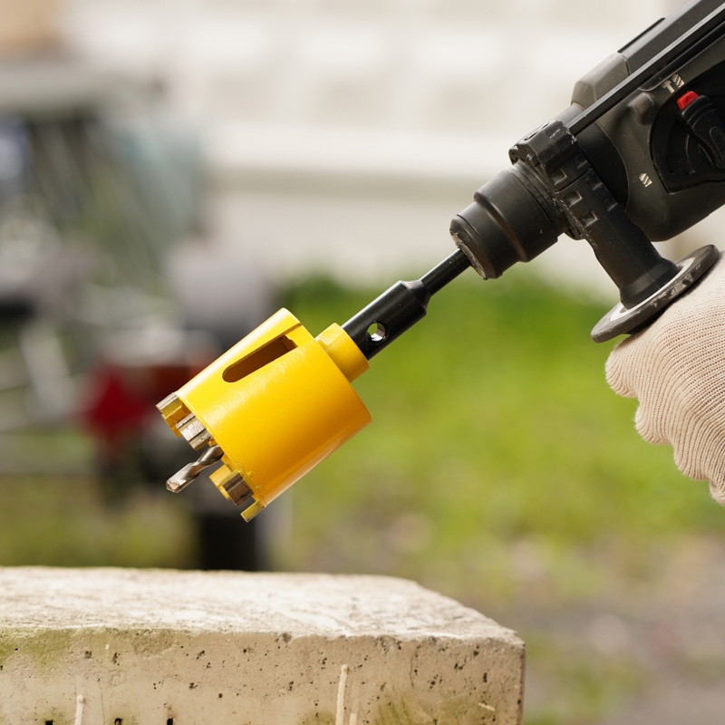 Рекомендуемая частота оборотов 600-900 об/мин. В комплекте поставляется центрирующее сверло.