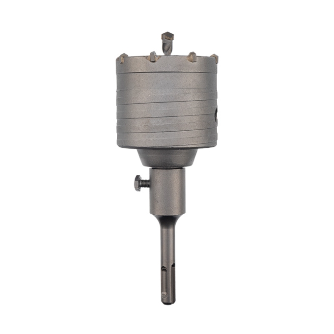 Коронка по бетону предназначена для сверления отверстий под трубы, розетки и выключатели в поверхностях из бетона, гранита, кирпича и камня при помощи перфораторов с патроном SDS PLUS.
