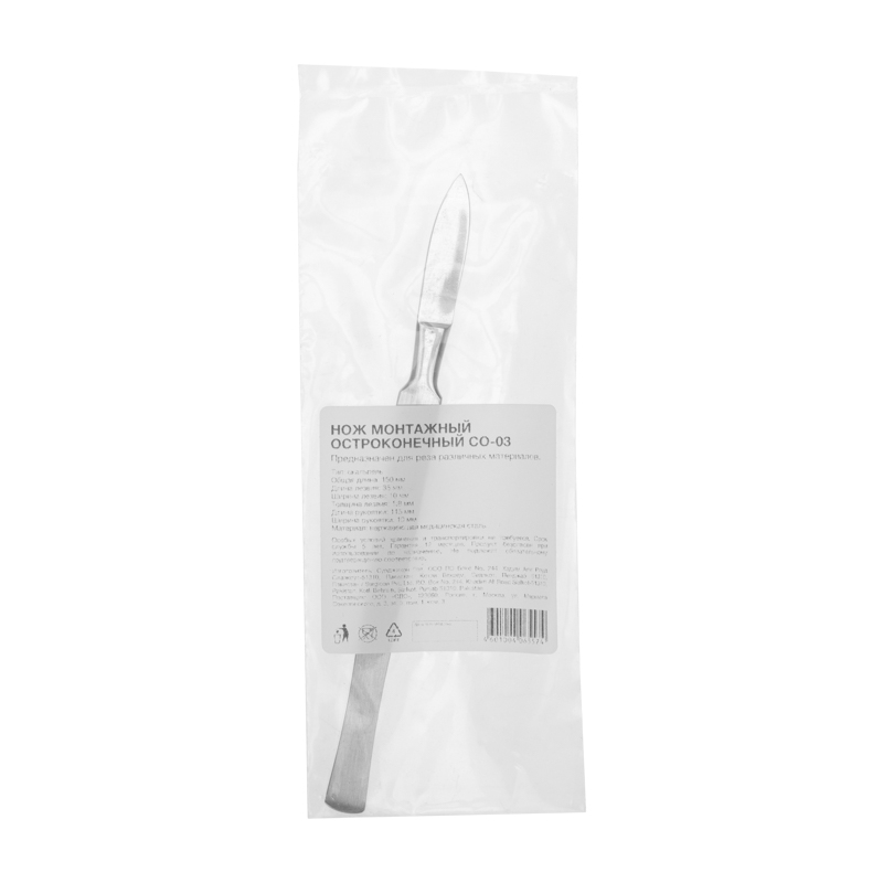 Нож монтажный тип Скальпель остроконечный СО-03 150мм