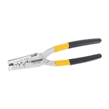 Компактные, легкие и долговечные благодаря простой конструкции пресс-клещи (HT-16M) предназначены для опрессовки изолированных и неизолированных втулочных наконечников. Конструкция охватывает широкий диапазон обжимаемых наконечников, для удобства на губках изделия нанесена справочная маркировка.