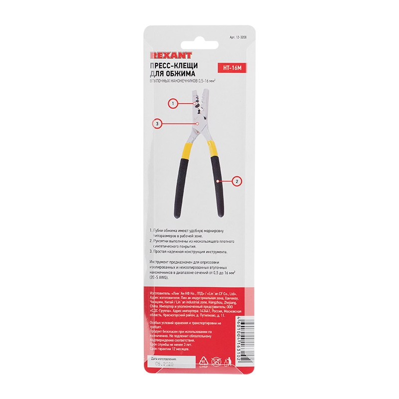 Пресс-клещи для обжима втулочных наконечников 0,5-16 мм² (HT-16M) REXANT