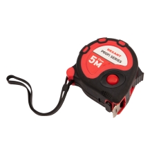 Длина: 5 метров Ширина полотна: 25 мм Эргономичный дизайн Прорезиненный корпус Полотно из закаленной стали Большой вылет полотна без излома Ударопрочный ABC пластик Надежный сдвижной фиксатор Глянцевое покрытие полотна