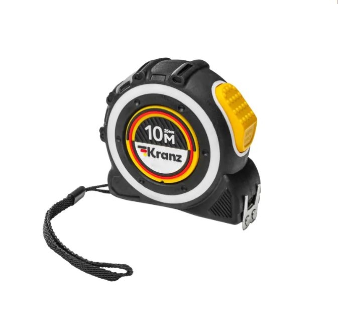 Измерительная рулетка предназначена для проведения измерительных работ в строительстве, хозяйстве, а также для ландшафтных и геодезических исследований. Двухкомпонентный прорезиненный корпус, выполненный из ударопрочного пластика, не скользит в руках. Закаленное двухстороннее толстое полотно может быть вытянуто на большую длину без изломов. Имеет глянцевое лаковое покрытие, которое не стирается со временем. Обладает удобным двухсторонним зацепом с мощными магнитами. Автоматическая лента бесшумно сматывается при нажатии на кнопку. На корпусе расположена клипса-зажим для фиксации рулетки на ремне, кармане или поясной сумке. Ремешок позволяет надевать инструмент на запястье, чтобы освободить руки для работы.