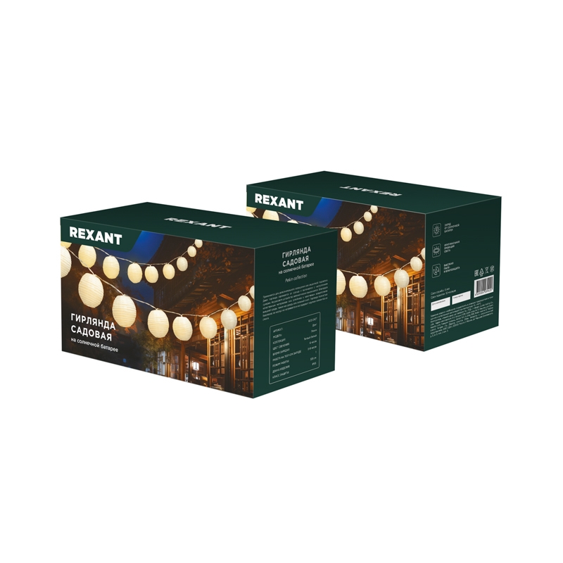 Гирлянда садовая Денг, 335см, 3000К, встроенный аккумулятор, солнечная панель, коллекция Пекин REXANT
