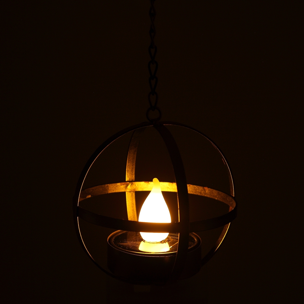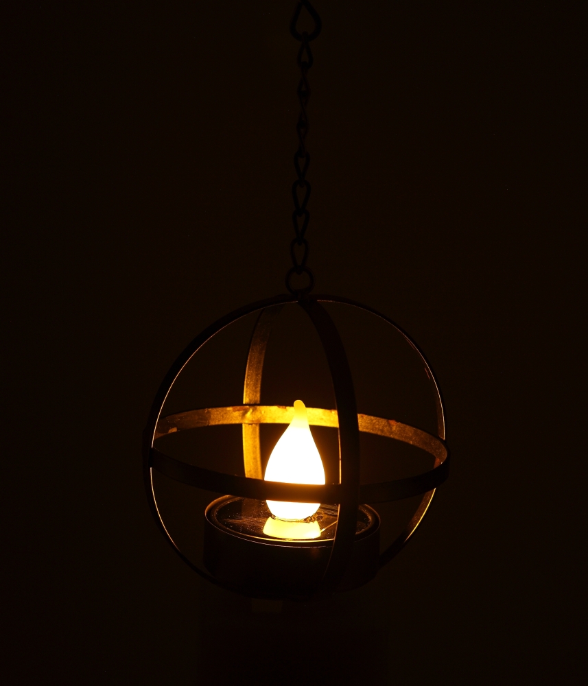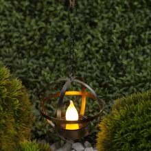 Небольшие внешние габариты позволят Вам разместить светильник на фасаде или карнизе дома, слегка подсветить тропинку, ворота или террасу. Металлический светильник имеет большой крючок для подвешивания. LED светильник функционирует на солнечной батарее. Такой способ получения энергии является самым экологичным, энергоемким, а также бесшумным. Питание происходит во включенном режиме, днем. Самое интересное начинается после захода солнца: декоративная свеча начинает светиться теплым желты светом, создавая эффект пламени. Обстановка на участке приобретет немного таинственный характер за счет необычного решетчатого корпуса. Солнечная батарея предусматривает 8 часов непрерывной работы. Высокая степень защиты от пыли и влаги позволяет оставлять светильник на улице даже во время дождя. Обращаем Ваше внимание, что перед использованием фигурки её необходимо включить и зарядить. Светильник заряжается в течение всего светового дня.