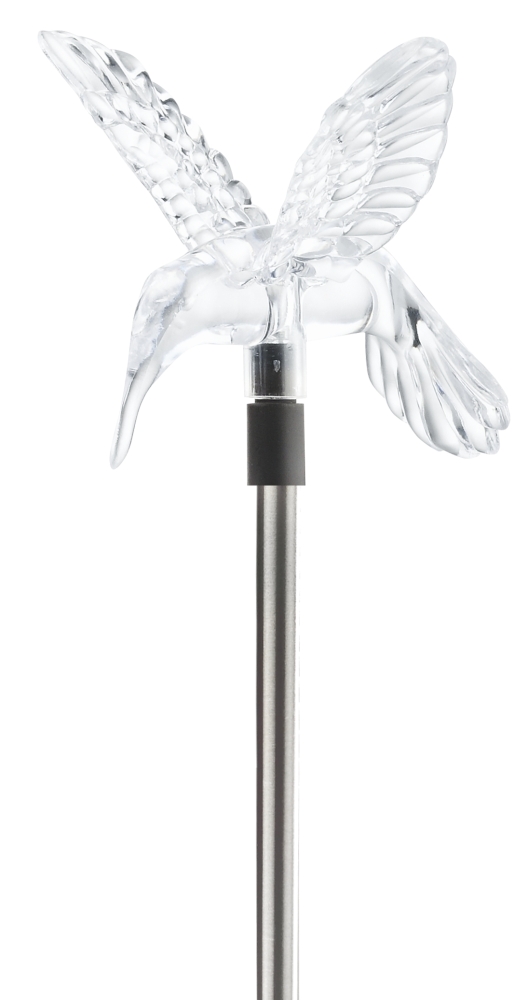 Декоративный садовый светильник на длинной стальной стойке производителя Era применяется для установки на улице и подходит для украшения и освещения сада. Он представляет собой легкую конструкцию в виде прозрачной фигурки птички колибри, сидящей на колышке, которая ярко светится в темноте и станет изюминкой вашего газона. Комплект дополнен насадкой в виде цветка. Приспособление способно...