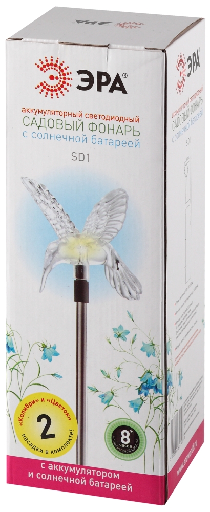 Светильник ЭРА SD1 'Цветок+Колибри' аккум.NiMH AA, солн.бат, 1xLED, карт (24/288)