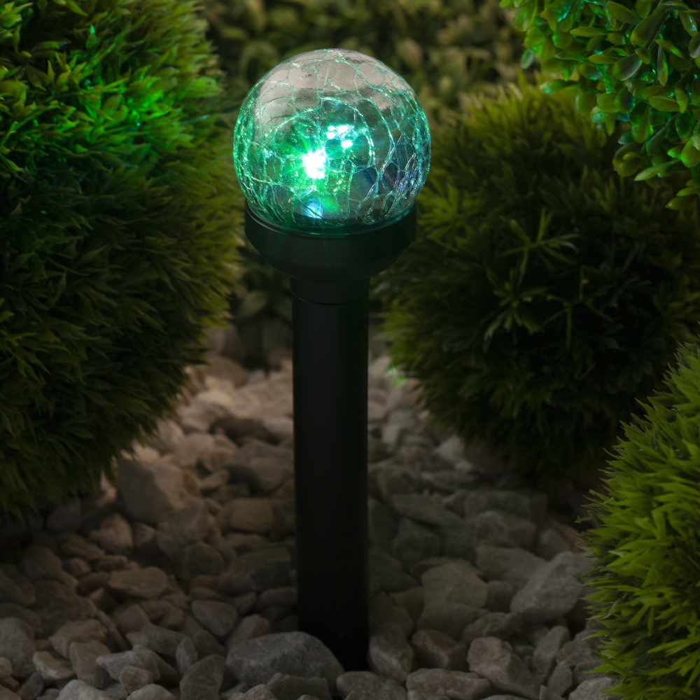 Описание Диаметр стеклянного шарика 5,5 см. Основание - пластик. RGB светодиод. Поставляется в промоупаковке по 12 шт. Обращаем Ваше внимание, что перед использованием фигурки её необходимо включить и зарядить. Светильник заряжается в течение всего светового дня