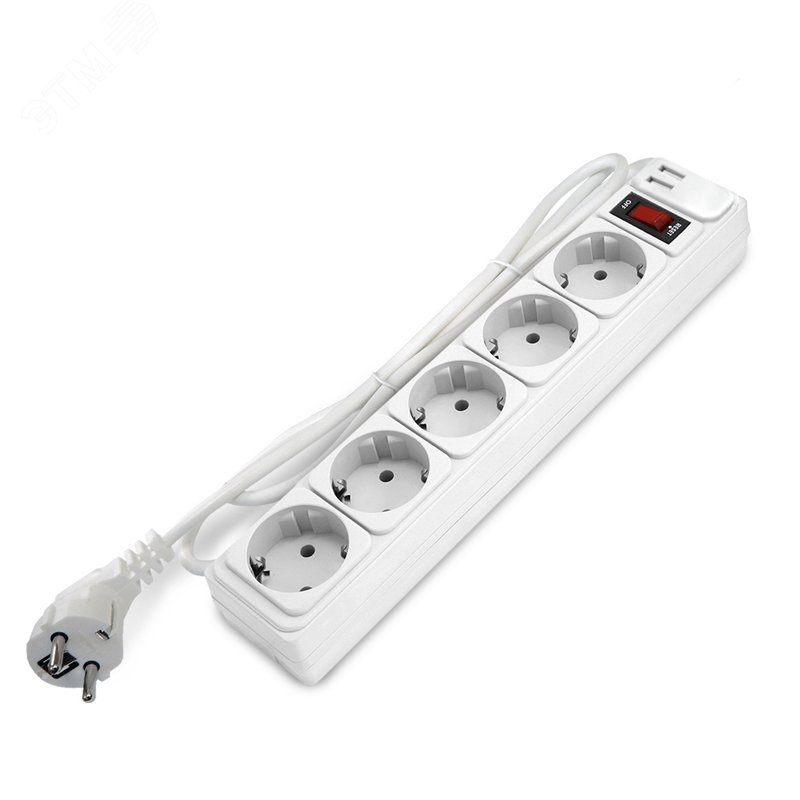 Сетевой фильтр DOMTOK 5гн 1,8м с/з ПВС 3х1 10А/2,2кВт с USB type-A + type-A, белый /15