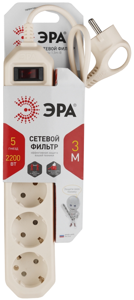 Сетевой фильтр ЭРА USF-5es-3m-I с/з 5гн 3м сл.кость ПВС 3x0,75мм2