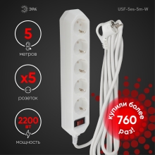 Сетевой фильтр ЭРА USF-5es-5m-W с/з 5гн 5м белый ПВС 3x0,75мм2