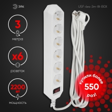 Сетевой фильтр ЭРА USF-6es-3m-W-BOX с/з 6гн 3м белый ПВС 3x0,75мм2