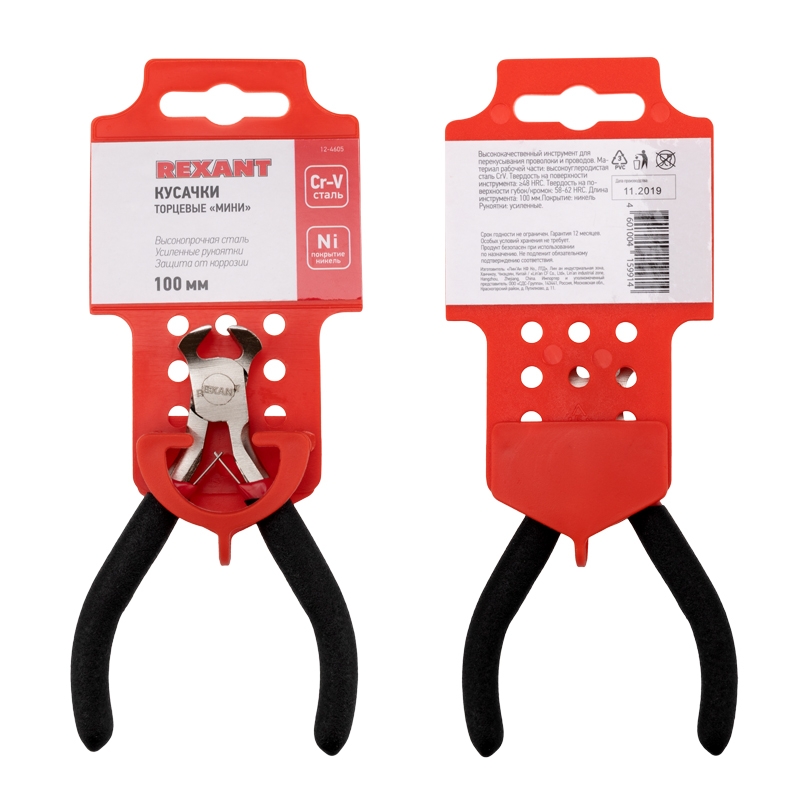 Кусачки торцевые мини 100мм никелированные, авторазжим, обливные рукоятки REXANT