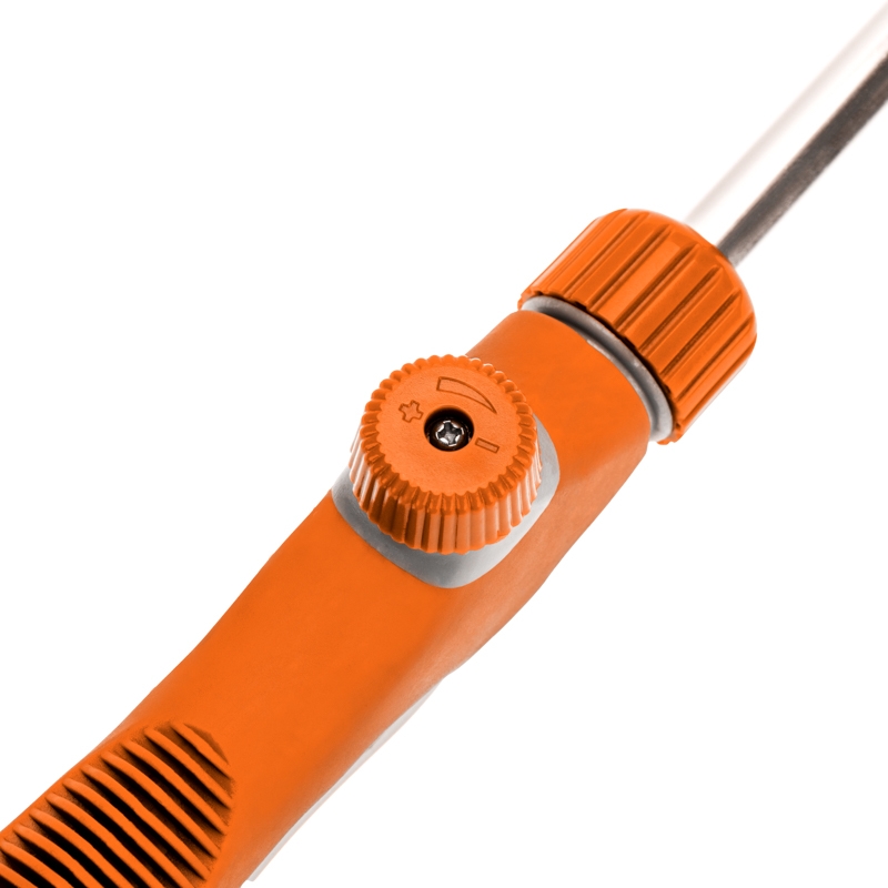 Распылитель представляет собой садовый аксессуар, предназначенный для полива, орошения и ухода за растениями. Удлиненная ручка обеспечивает удобство использования, позволяя дотянуться до труднодоступных мест и областей с минимальными усилиями. Это особенно полезно при обработке высоких растений. Курок на ручке позволяет с комфортом контролировать подачу воды.