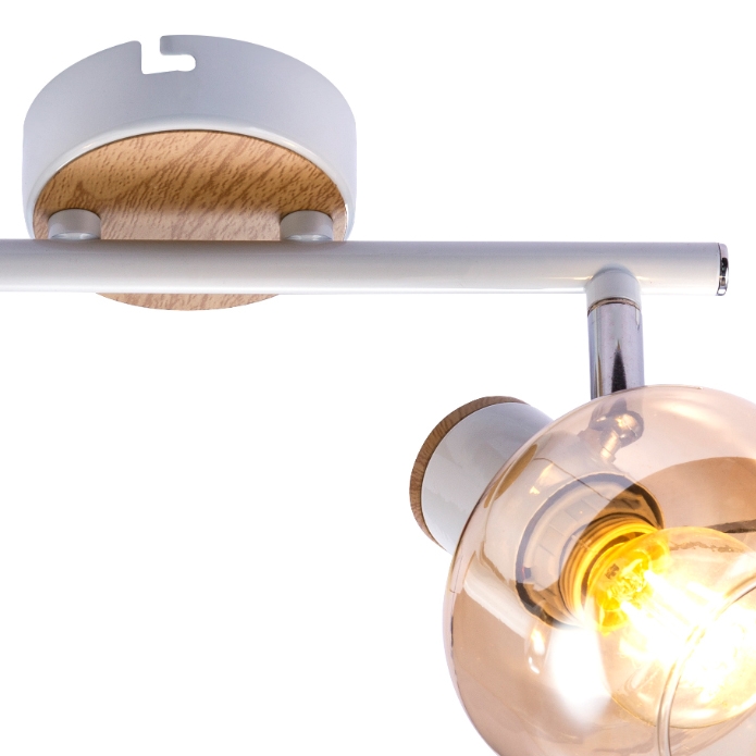 Светлое дерево греет взгляд и создаёт уютный нежный тандем с аккуратным металлическим каркасом белого цвета. Придаёт изюминку этой идиллии лёгкое перламутровое покрытие плафонов. Эта серия с лёгким ретро-настроением в современных интерьерах смотрится особенно стильно. Серия представлена настенно-потолочным светильником на 2 лампы.