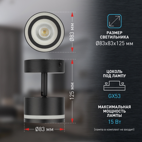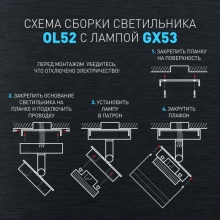 Накладной светильник OL52 BK делает помещение зрительно более стильным и интересным. Используя по периметру несколько однотипных осветительных устройств, можно сформировать интересные световые геометрические рисунки. Цоколь для источника света GX53, напряжение питания ~230В 50/60Гц, материал металл, пластик, цвет светильника черный, размер D83x83x125, максимальная мощность лампы 15Вт, степень защиты IP20