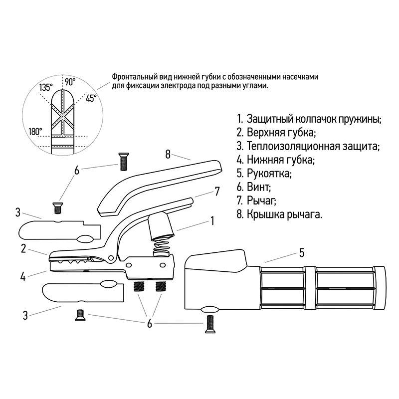 Прочный и универсальный в применении инструмент гарантирует жесткую фиксацию широкого диапазона используемых габаритов электродов и сварочного кабеля. Производителем предусмотрена надежная фиксация электрода в четырех положениях благодаря рельефу зажимной пластины. Удобная ручка надежно изолирована пластиковым материалом, который выдерживает высокие механические и технические нагрузки.