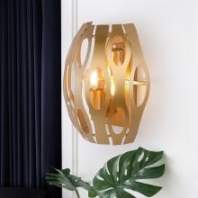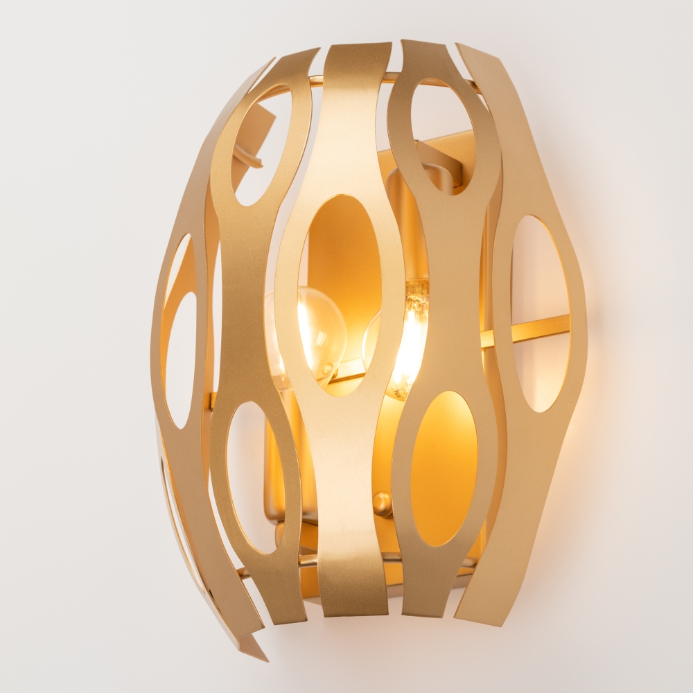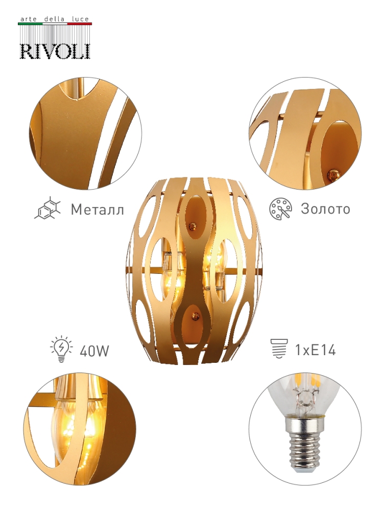 Со светильниками Rivoli Mitzi комната будет наполнена воздухом, светом и стилем. Благодаря уникальному методу высокоточной лазерной резки, создателям этой серии удалось добиться невесомости металла и особой плавности линий узора. Благородный золотой цвет абажура с перламутровым напылением   это солнце, навсегда поселившееся в вашем доме! Коллекция представлена бра на 2 лампы
