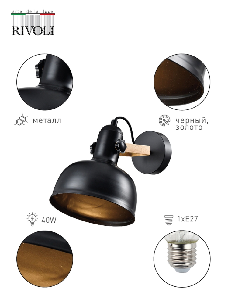 Бра Rivoli Nathalie 4121-401, 1хЕ27 40 Вт (лофт - кантри)