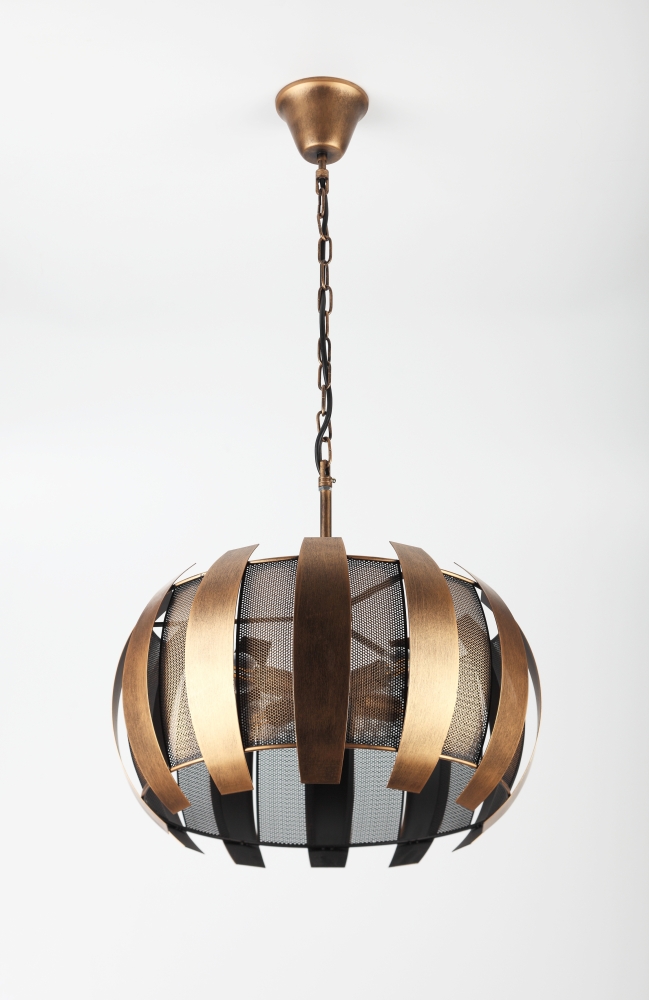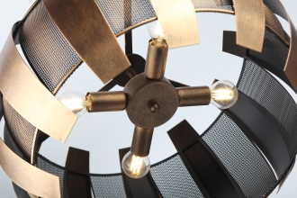 “Diverto' - в переводе с итальянского “веселье'. Эта серия, действительно, похожа на шутку, она  только с виду  кажется серьезной. Но присмотритесь - теплый цвет античной бронзы, округлые формы и мягкий свет, струящийся сквозь металлическую сетку   как маленькие искорки или веснушки озорного ребёнка. В коллекции представлен подвесной светильник на 4 лампы.