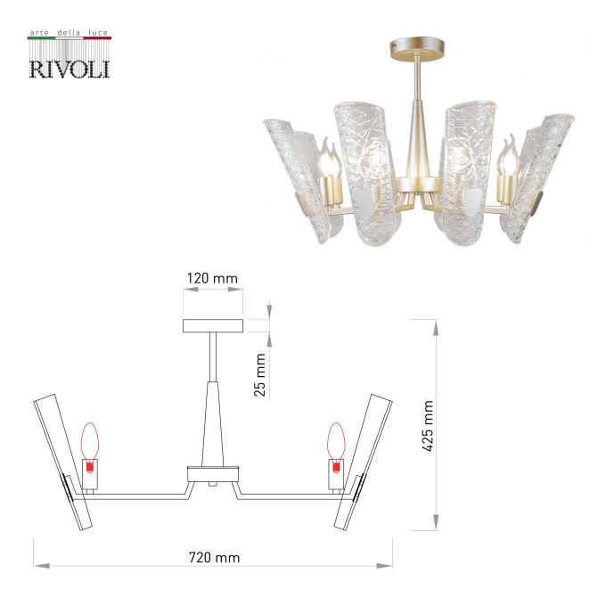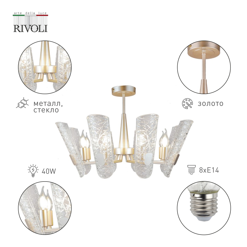 Люстра Rivoli Dolores 4087-308, 8хЕ14 40 Вт (дизайн)