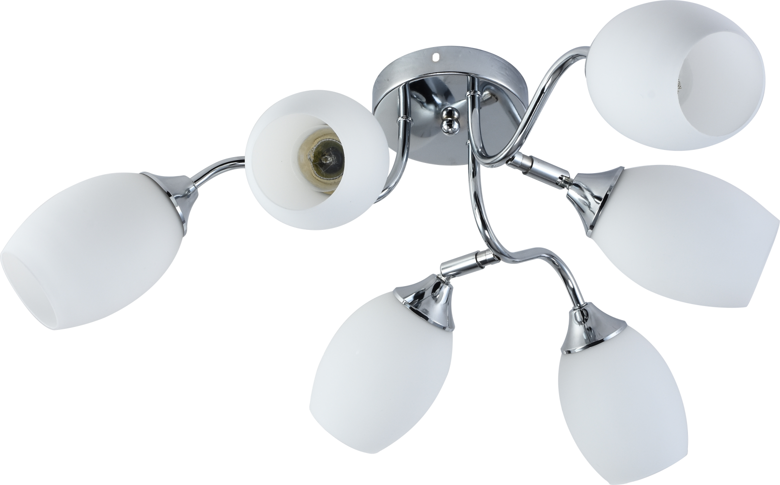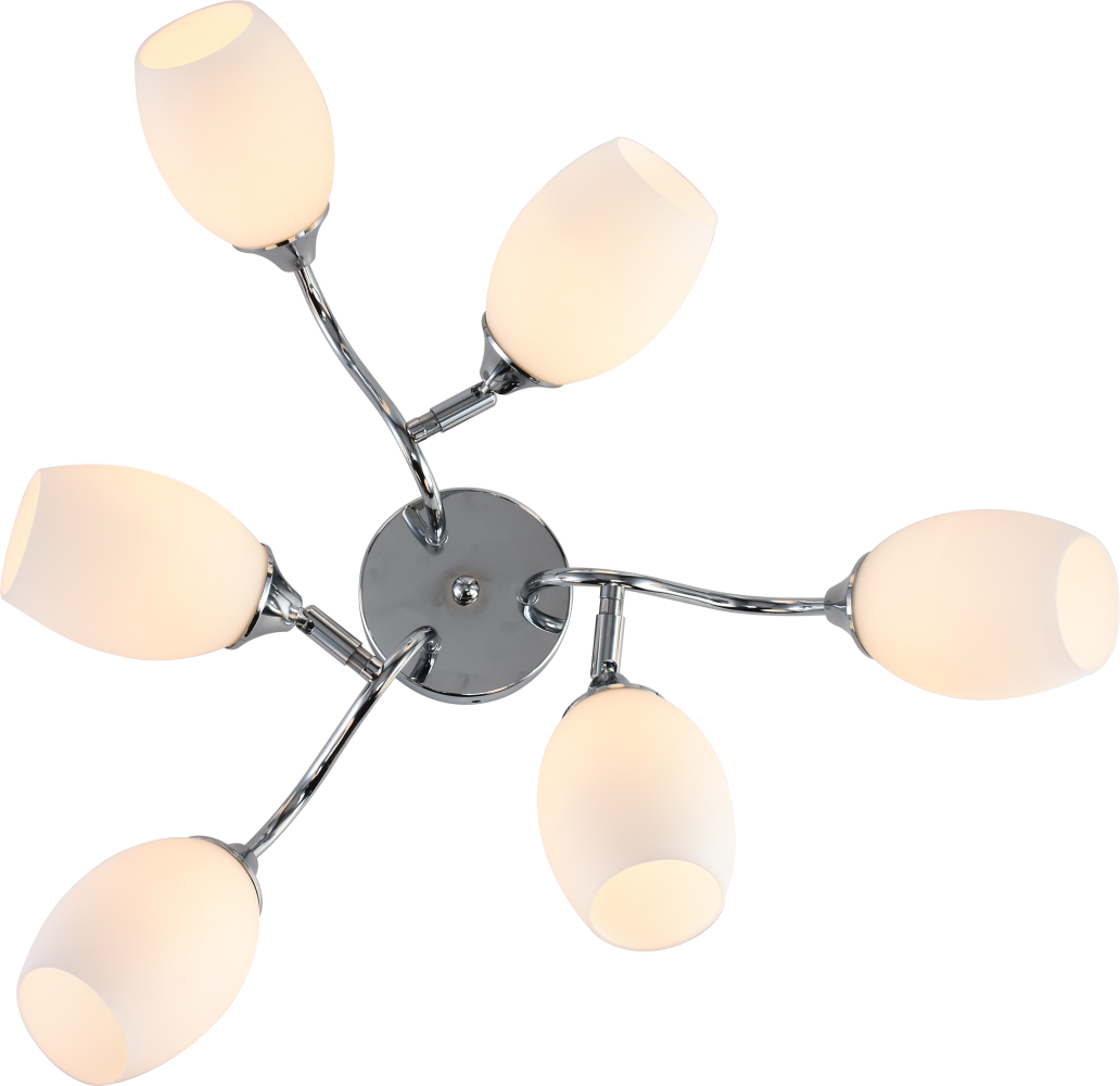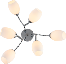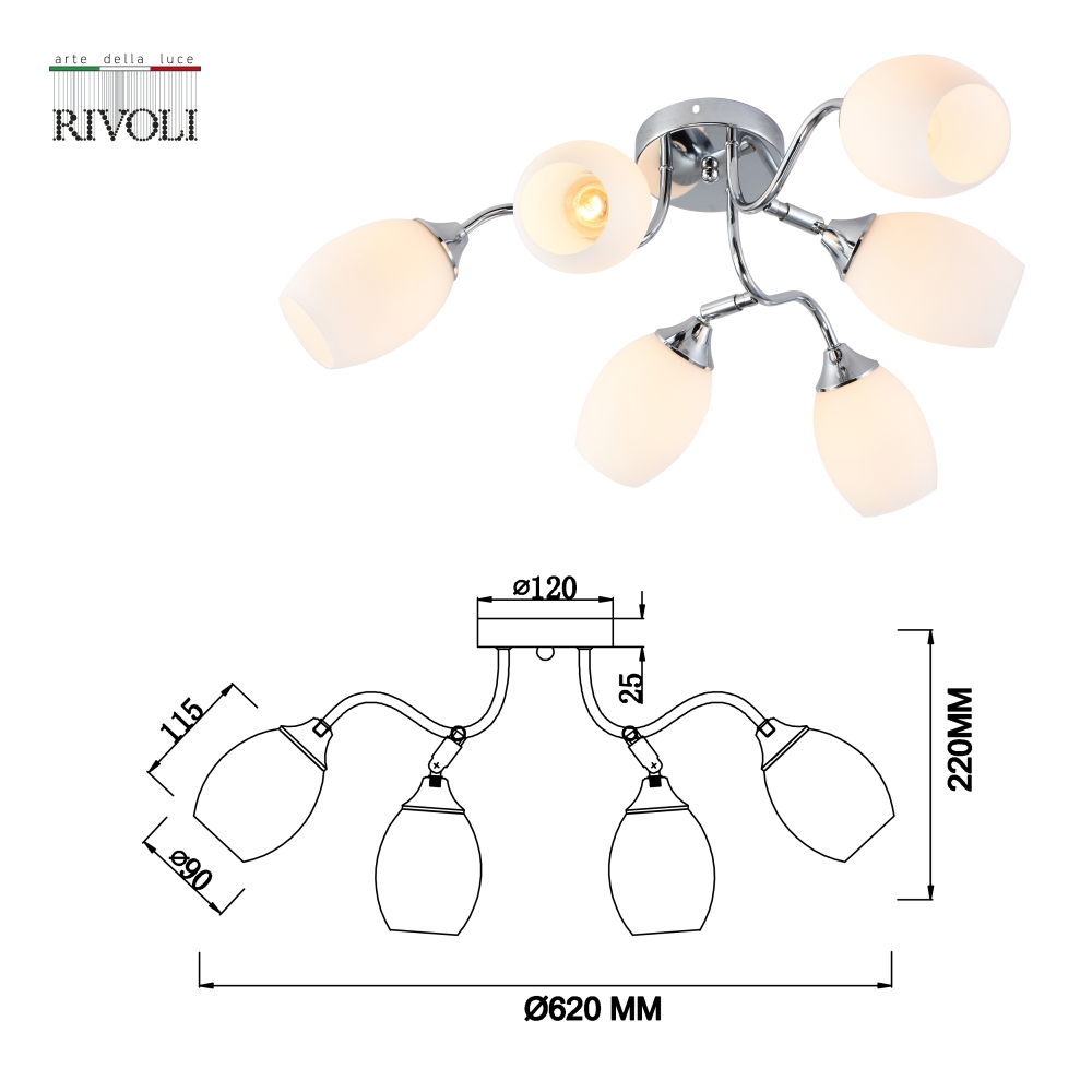 Rivoli Hollie (арт. 3135-306) - 6-рожковая светлая люстра на потолок, выполненная в стиле модерн. Габариты люстры: 620*620*220 мм. В коллекции итальянских дизайнеров Rivoli Hollie представлены аналогичные люстры потолочные с 8 плафонами - арт. 3135-308.     Данная люстра в гостиную имеет 6 элегантных плафонов из матового стекла. Арматура люстры напоминает веточки и окрашена в модный цвет хром. Флористическую тему продолжает и форма плафонов - плафоны люстры Hollie созданы в виде бутонов. Матовое стекло - удачное решение для люстры в спальню. Свет будет мягким и без бликов. Рекомендуем купить для этой люстры лампы Е27 мощностью 60 Вт. Вы получите яркое и комфортное освещение для площади около 18 м2.     Покрытие металлического корпуса современной итальянской люстры Hollie Rivoli - гальваническое. Можно с успехом заказать эту модель в качестве люстры на кухню, так как она устойчива к неблагоприятным воздействиям окружающей среды - пар, прямые солнечные лучи. Практичная и красивая люстра для вашего дома!