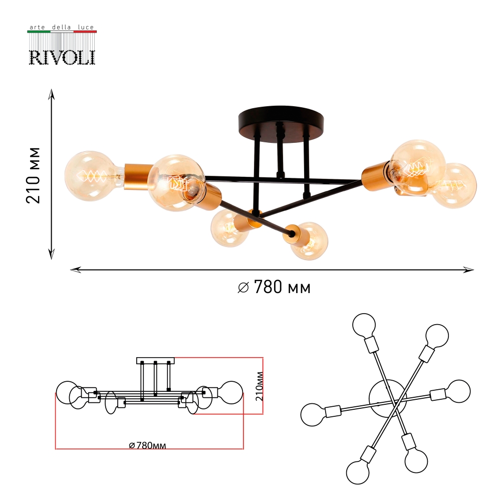 Люстра Rivoli Kerstin 5078-306, 6хЕ27 40 Вт (лофт - кантри)