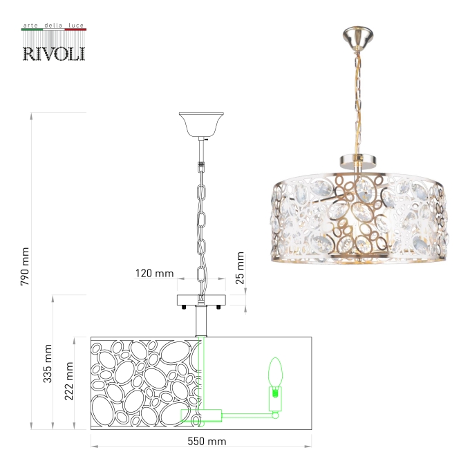 Люстра Rivoli Reina 4142-208, 8хЕ14 40 Вт (дизайн)