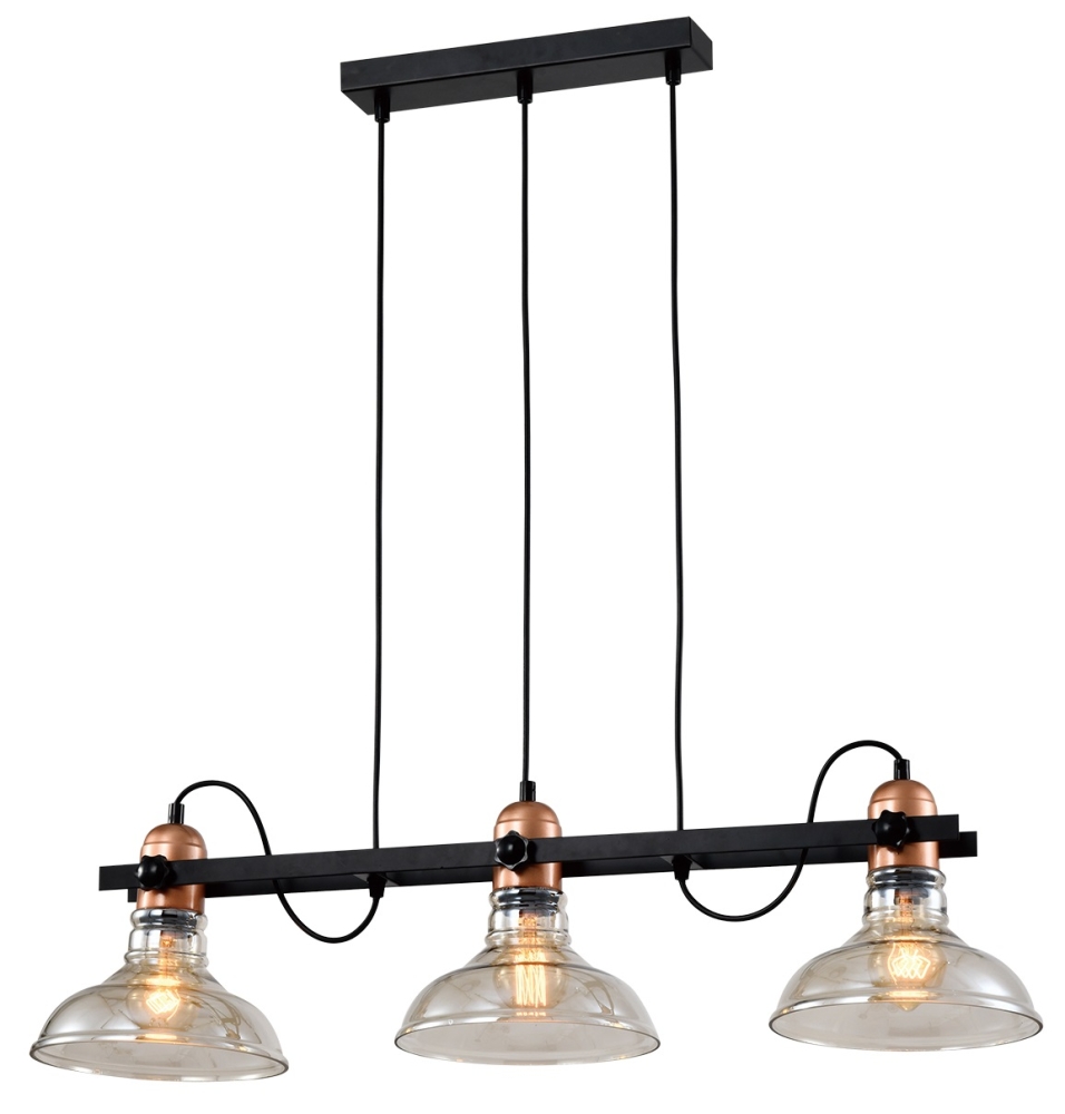 Дизайнерская подвесная люстра Leila (арт. 4093-203) от итальянского бренда Rivoli. Подвесные люстры Rivoli Leila под 3 лампы Е27 40 Вт представляют собой 3 стеклянных плафона в ретростилистике, объединенных металлическими рейками черного матового цвета. Прозрачные плафоны люстры имеют легкое теплое тонирование для смягчения света. Стильные патроны люстры с окрашиваем под медь крепятся к арматуре декоративными лофт-фиксаторами. Длину тросов легко отрегулировать, когда подвесные люстры Leila Rivoli монтируются на потолок.     Подвесные люстры на потолок Rivoli Leila удачно смотрятся с филаментными лампами и хорошо создают стиль лофт, ретро, кантри, индастриал. Эти люстры потолочные нашли широкое применение в дизайнерских интерьерах. Европейскую коллекцию Leila дополняет подвесной светильник под 1 источник света (арт. 4093-201) и люстра подвесная с 4 плафонами (арт. 4093-304). Все люстры коллекции имеют оригинальные плафоны, повторяющие форму старинных уличных фонарей.