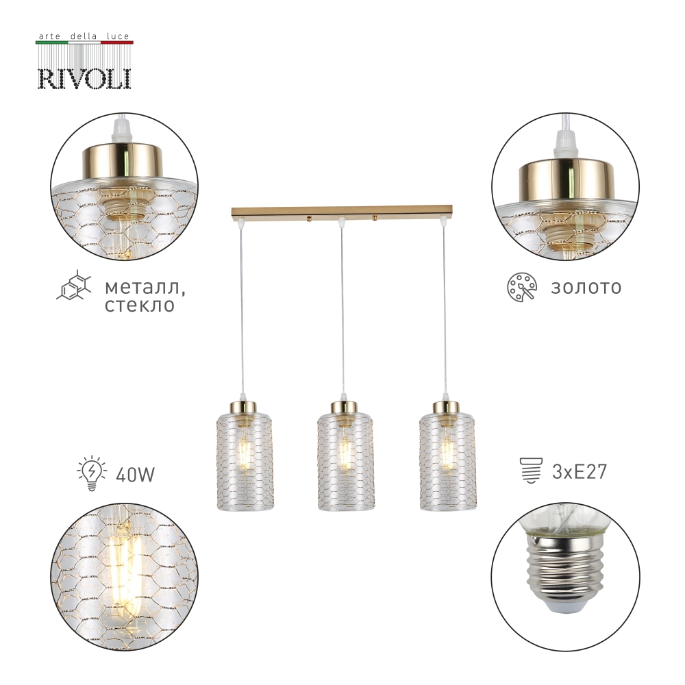 Подвес Rivoli Malice 9124-203, 3хЕ27 40 Вт (модерн)