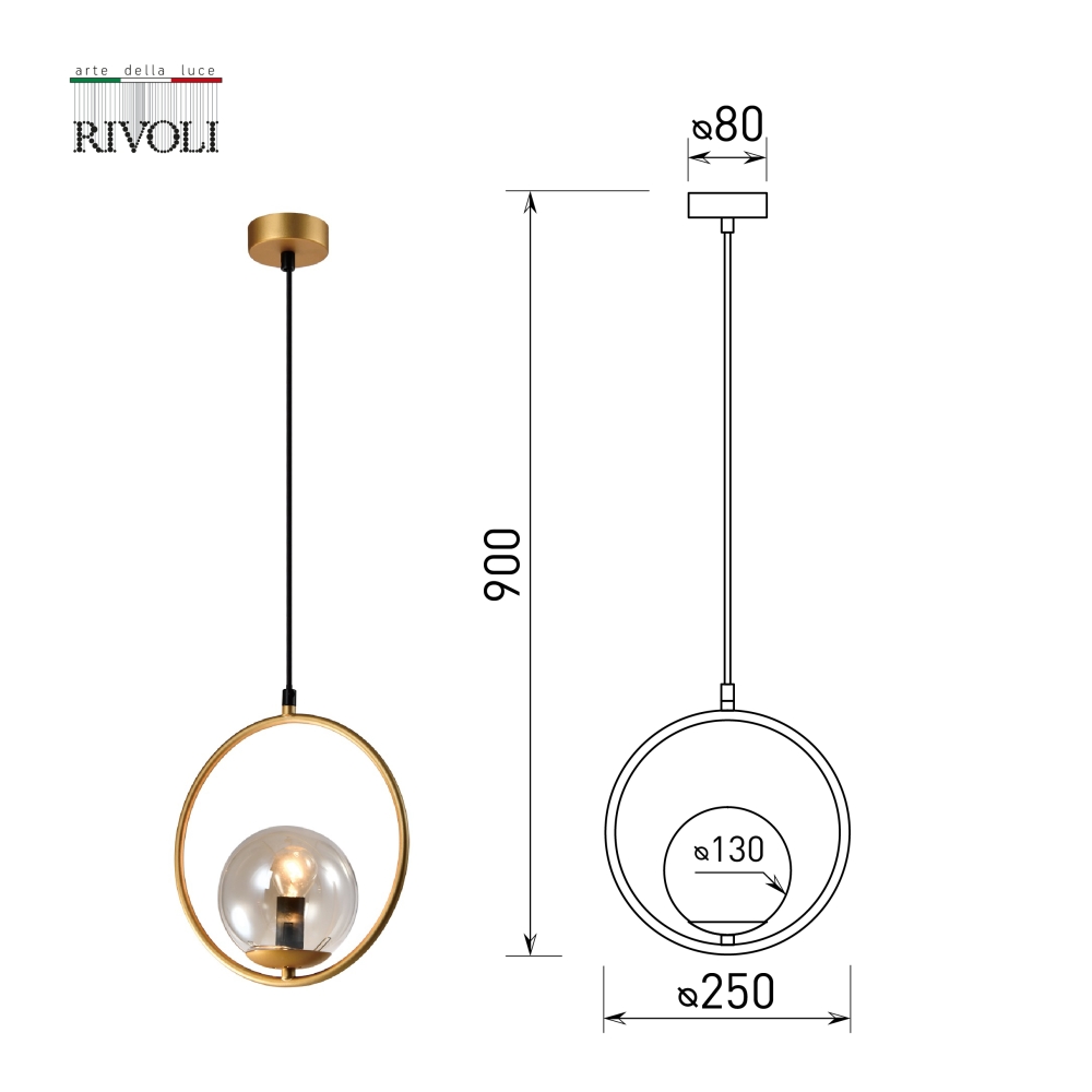Подвесной светильник Rivoli Misericordia (арт. 5147-210) с регулировкой высоты. Светильники потолочные подвесные Misericordia от итальянского бренда Rivoli под лампу Е14 мощностью 40 Вт имеют компактный круглый плафон из стекла. Подвесные светильники на тросах Misericordia созданы в эффектном сочетании черного и золотого цветов: золотое декоративное кольцо обрамляет стеклянный плафон...
