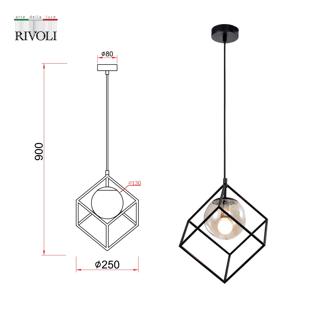 Подвес Rivoli Moon 5145-201, 1хЕ14 40 Вт черный (лофт - кантри)