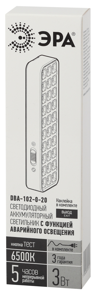 2 режима работы; время автономной работы 300 минут; наличие кнопки "ТЕСТ" для проверки работы в аварийном режиме; наклейка "ВЫХОД" в комплекте.