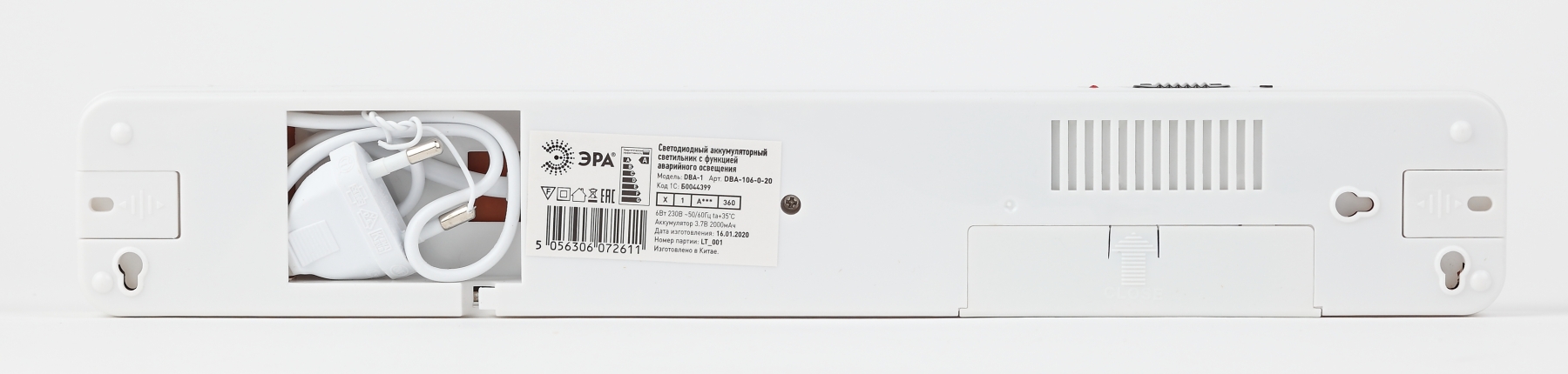 Световой поток 360Лм Режим работы от сети 230В, от аккумулятора.