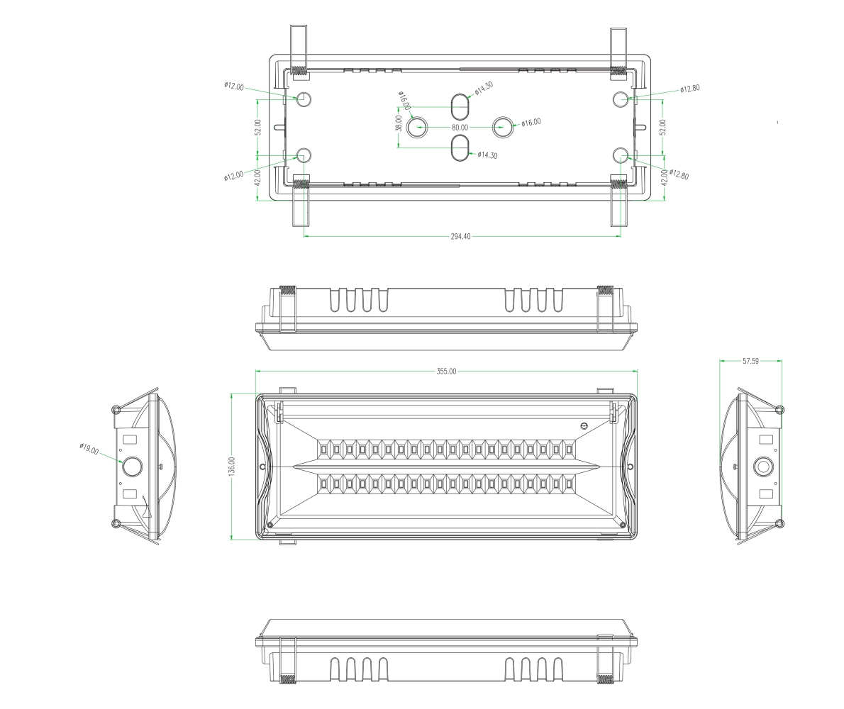 Габариты: 355x136x58мм.
