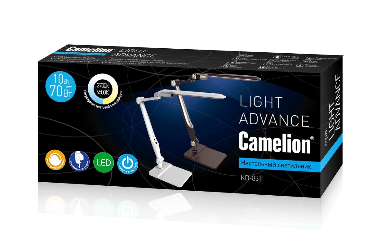 Светильник Camelion KD-831 наст.Бел. осн+струбц.10 Вт,230В сенс. рег.ярк и цвет.темп. (5)