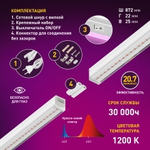 Светодиодный светильник линейный для растений 14 Вт ЭРА LLED-05-T5-FITO-14W-W предназначен для активации роста цветов и рассады. Вы можете поставить фитолампу как у себя в квартире, так и в парнике - она отлично впишется в интерьер любого помещения. Коэффициент пульсаций составляет 0,5%, а потому свет не будет раздражать и не доставит неудобств домашним. К несомненным преимуществам нашего линейного светильника относятся также простая установка и возможность комбинирования спектра. Растения под включенным освещением лучше всего оставлять на 4-6 часов. Установка лампы для роста растений рекомендуется не дальше 60 см, а для максимальной эффективности расстояние уменьшается до 10-20 см. В комплекте к светодиодной лампе прилагаются сетевой шнур, крепежи и коннекторы для подключения.