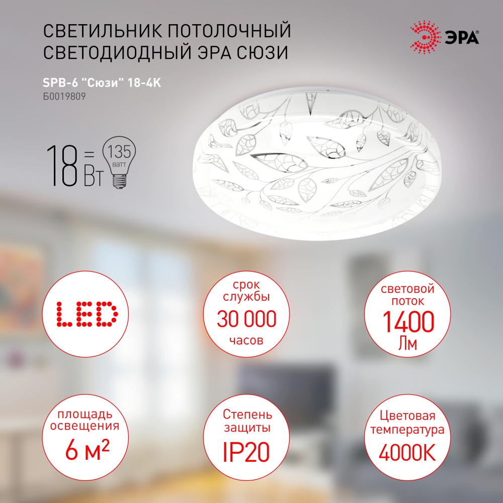 Светильник ЭРА SPB-6-18Вт Сюзи (С) 4К IP20 335*98мм