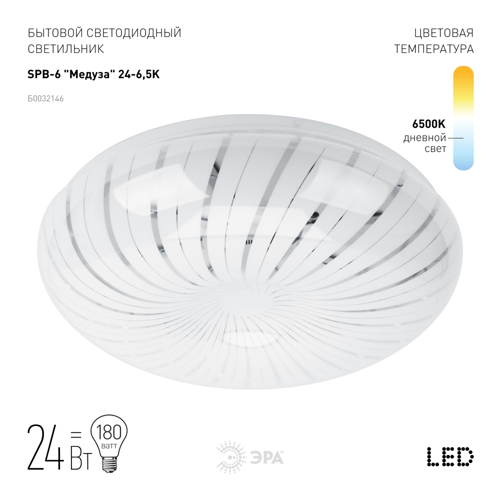 Светильник ЭРА SPB-6-24Вт Медуза (А) 6К IP20 405*115