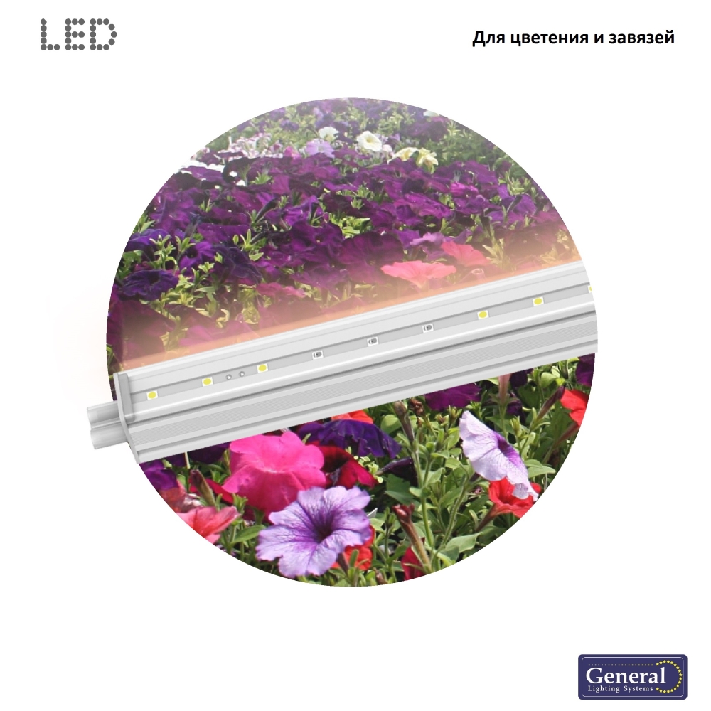 Светильник GENERAL LED для растений спектр для цветения и завязей GLF1-600-8Bт-ФИТО (1/30)