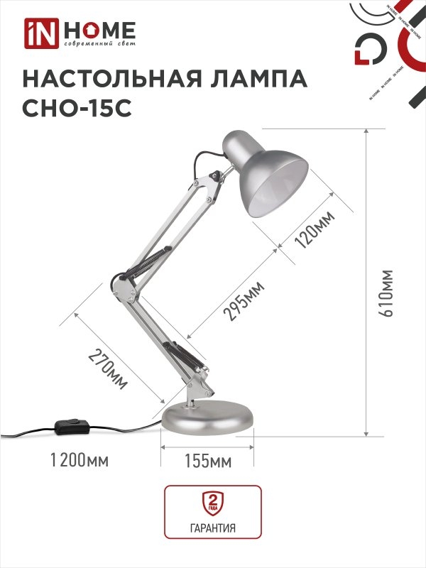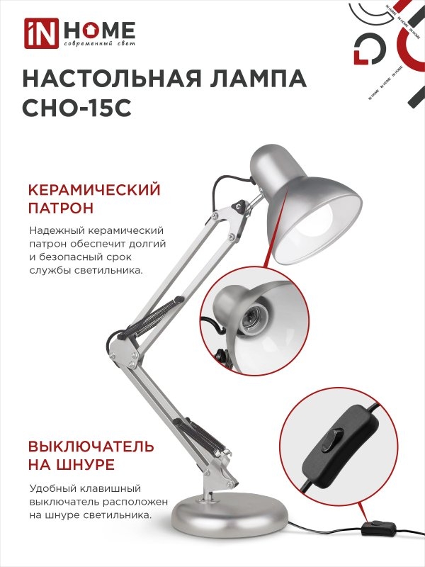 Светильник IN HOME CHO-15C на основании 60Вт, Е27, серебро