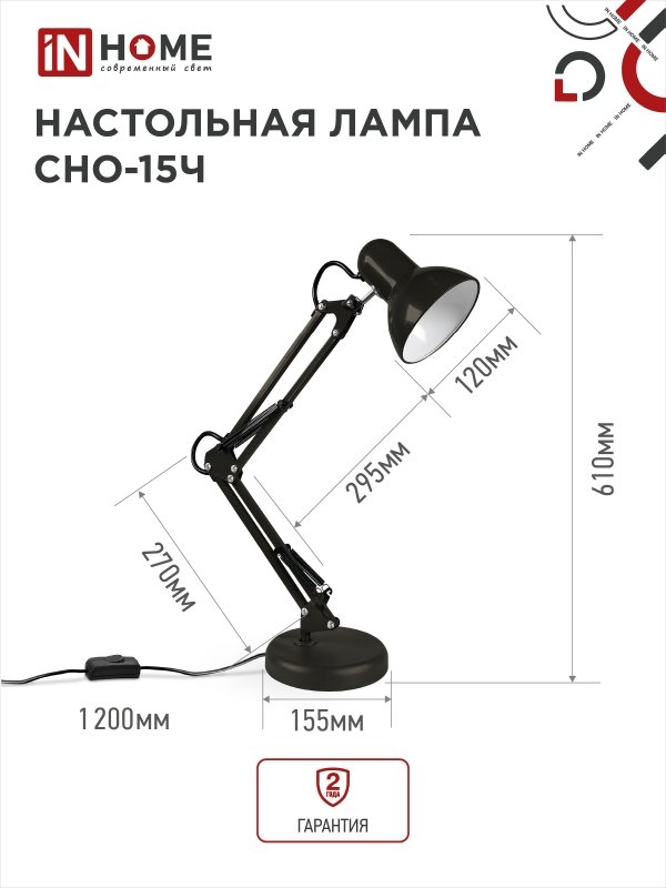 Светильник IN HOME CHO-15Ч на основании 60Вт, Е27, чёрный