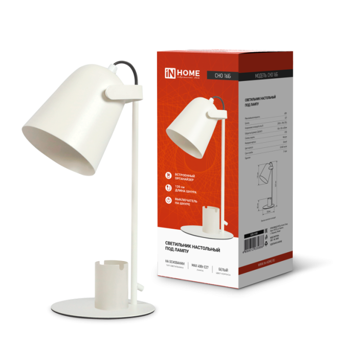 Светильник IN HOME CHO-16Б на основании с органайзером 60Вт, Е27, белый