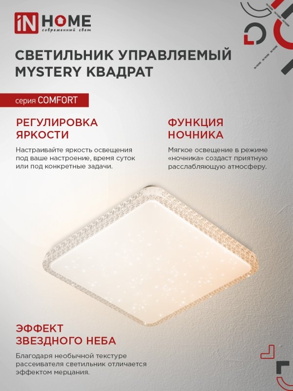 Светильник IN HOME ПДУ COMFORT 55Вт MYSTERY квадрат 3000-6500K 4400Лм 430x65мм