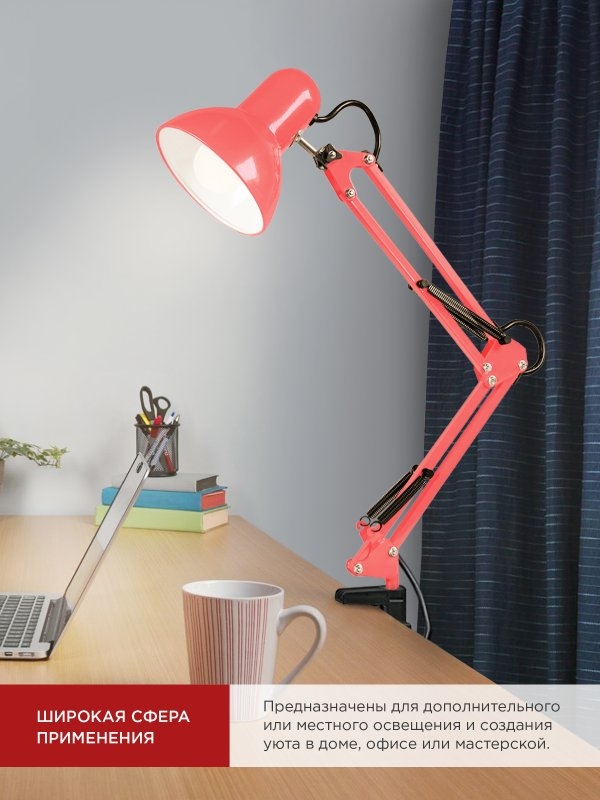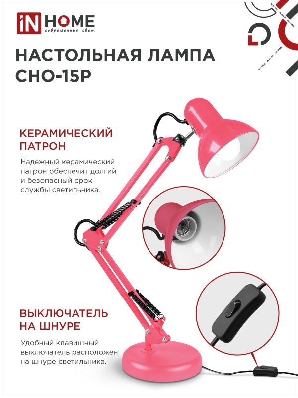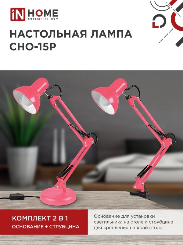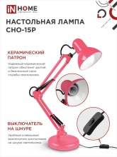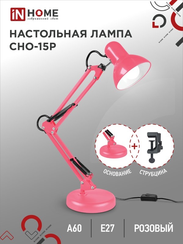 Светильник IN HOME СНО-15Р-E27 на основании+струбцина 60Вт, Е27, розовый