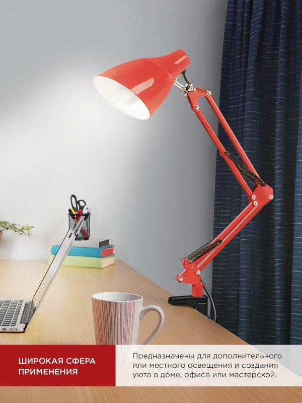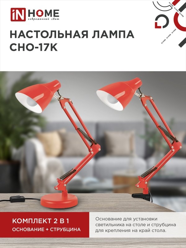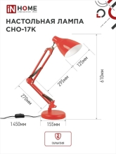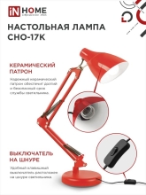 Светильник IN HOME СНО-17К на основании+струбцина 60Вт, Е27, красный