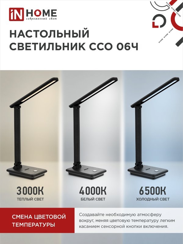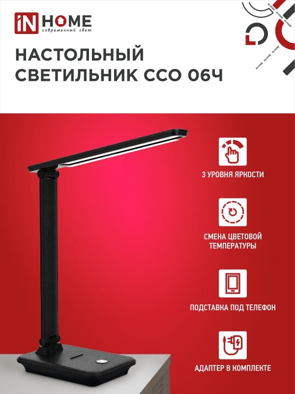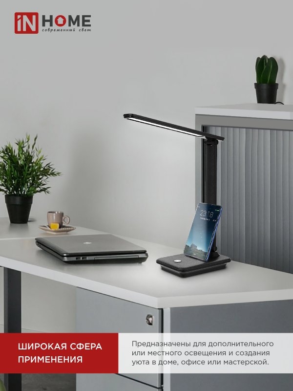 Светильник IN HOME ССО 06Ч 12Вт 3000-6500К 600Лм,подставка под тел. ЧЕРНЫЙ