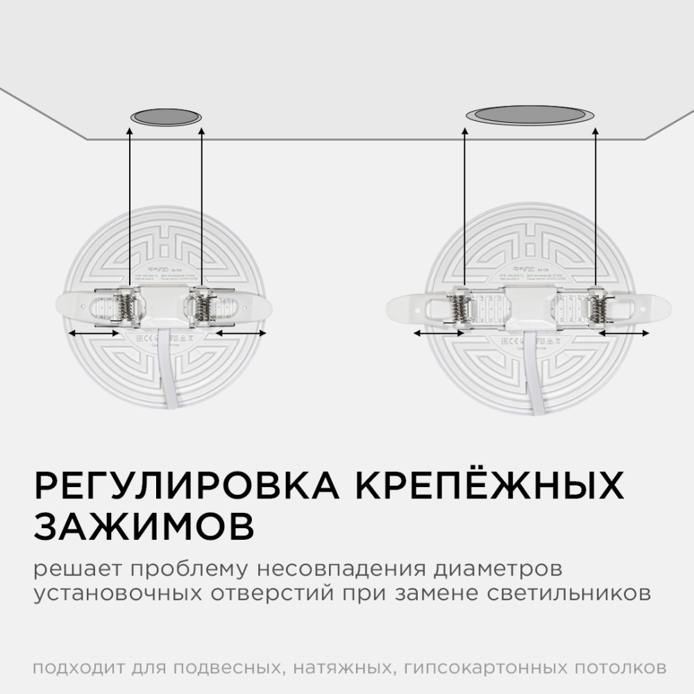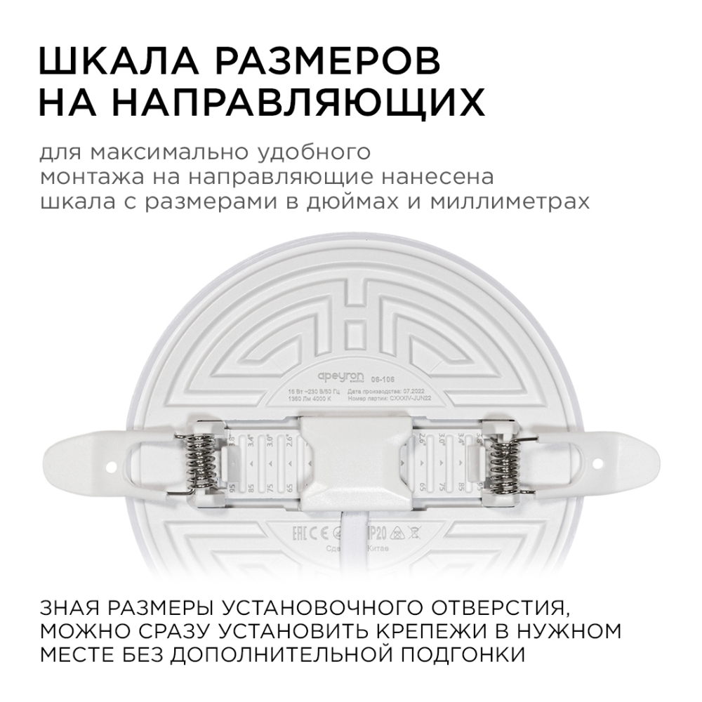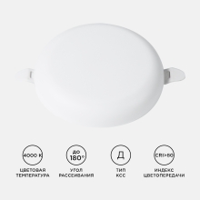 Светодиодная встраиваемая безрамочная панель 06-106 излучает световой поток в 1360 Лм, потребляя при этом 16 Вт (12Вт+4Вт), что в итоге дает энергоэффективность 85 Лм/Вт. Особенностью данного изделия является 3-х ступенчатая регулировка уровня освещенности путем нажатия клавиши выключателя: 1) освещение всей поверхности плафона, угол рассеивания 180°; 2) концентрированное освещение внутреннего диаметра, угол рассеивания 120°; 3) засветка торцевой части панели, эффект «кольцевого освещения». Вторая особенность панели – регулировка крепежных зажимов под посадочное отверстие Ø55-105 мм. Третья особенность – безрамочный дизайн плафона, благодаря чему возможна повышенная освещенность с углом рассеивания 180°. Размер изделия Ø120х21мм. Цветовая температура 4000К наиболее близка к естественному солнечному свету. Отдельный от корпуса драйвер имеет компактный размер. А благодаря удобному коннектору для соединения со светильником может быть легко заменен. Панель по способу монтажа является встраиваемой.