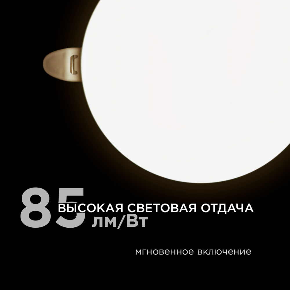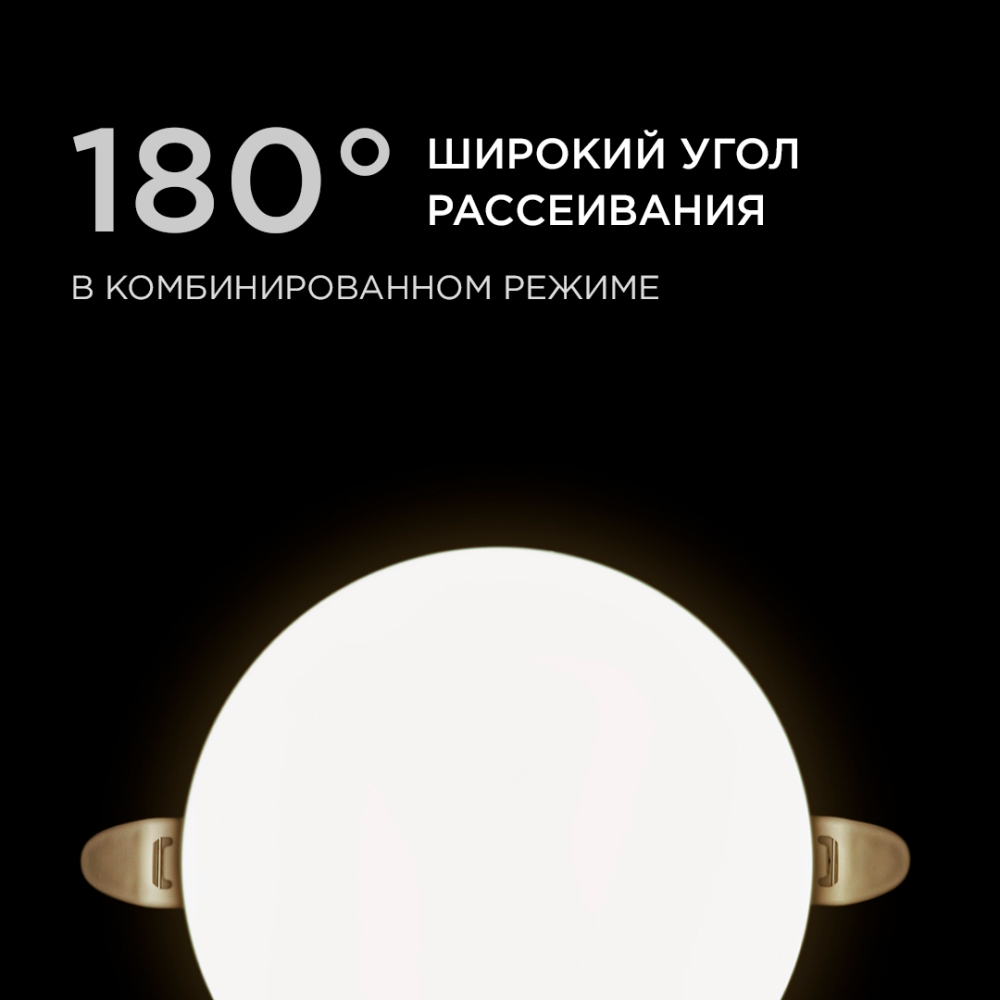 - Безрамочный дизайн плафона, угол рассеивания 180°;